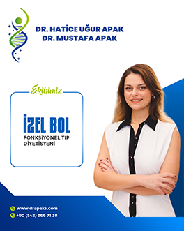 Fonksiyonel Tıp İleri Beslenme Eğitimi ve GAPS Sertifika Eğitimi gibi alanında öncü eğitimleri tamamlayarak, özellikle bağırsak sağlığı ve otoimmün hastalıklar üzerine derinlemesine bilgi ve deneyim kazanmıştır. İzel Bol, halen Dr. Mustafa Apak liderliğindeki ekipte fonksiyonel tıp diyetisyeni olarak görev yapmaktadır